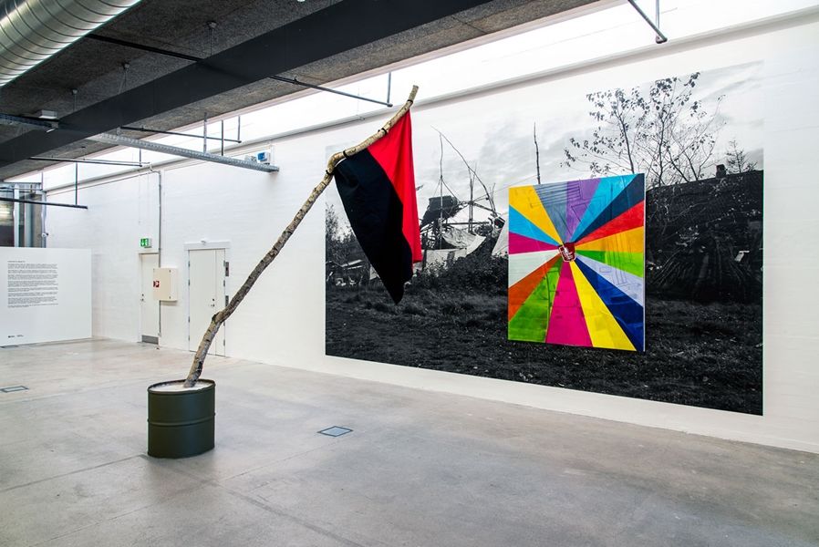 Tidligere skildringer af landsbyen Hjardemål og nedkradsede skitseplaner for den nu ikoniske Thylejr i Frøstrup, bliver i den sjællandske kunstners bearbejdninger til nye maleriske, eksplosive collager og enorme fototapeter, der dækker kunsthallens vægge fra gulv til loft.