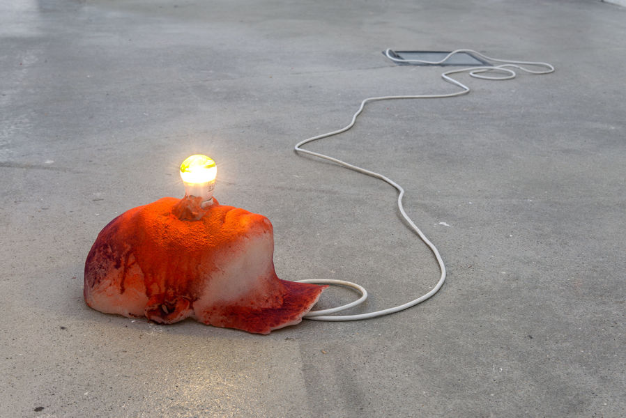 Christine Overvad Hansen (1988) arbejder ofte i krydsfeltet mellem skulptur og performance. Hun bruger gennemgående kroppen som instrument i performative eller skulpturelle handlinger, der blot lader aftryk af dens tilstedeværelse tilbage. Til [UDEN TITEL 17] har Christine Overvad Hansen udformet en omfattende installation, der forholder sig til rummenes særlige arkitektur. Installationen omfatter cire-perdue støbninger i aluminium og bly, smaragd og skind, samt en motoriseret skulptur i aluminium og tekstil.