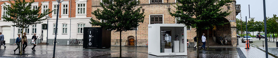 Informationsmateriale om projektets kunstneriske indhold, og en guide rundt til de femten forskellige udstillingskuber, kunne hentes i den sortmalede INFO-kube på Gabels Torv eller i Kunsthal NORD.
